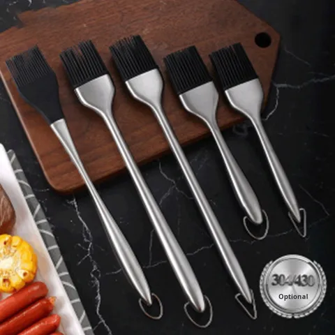 Cepillo de silicona resistente a altas temperaturas de acero inoxidable, mango hueco para barbacoa, pastel, hornear, crema, cepillo, herramientas de repostería para hornear