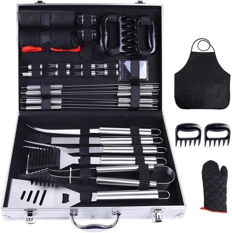 Caja de aluminio de acero inoxidable, accesorios para barbacoa al aire libre, juego de herramientas, 31 Uds.